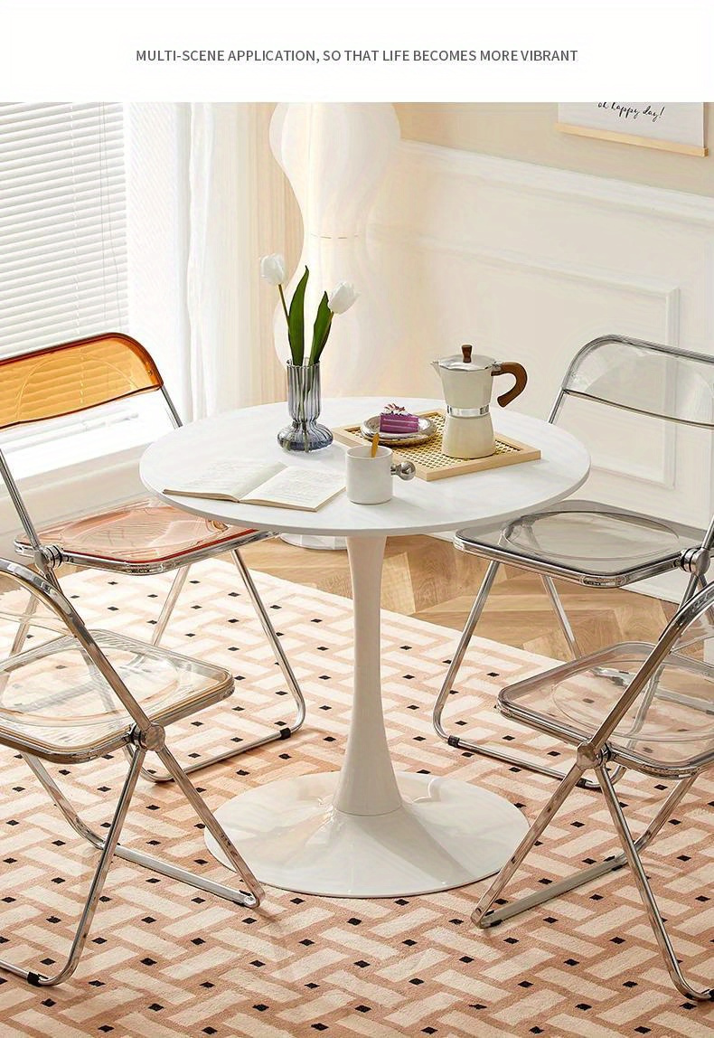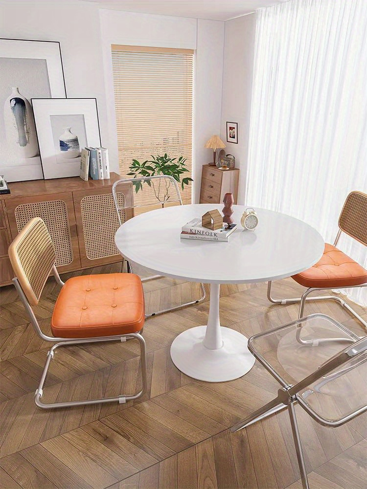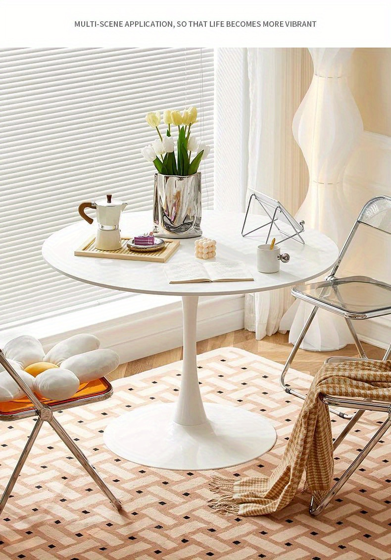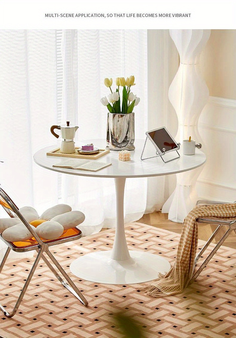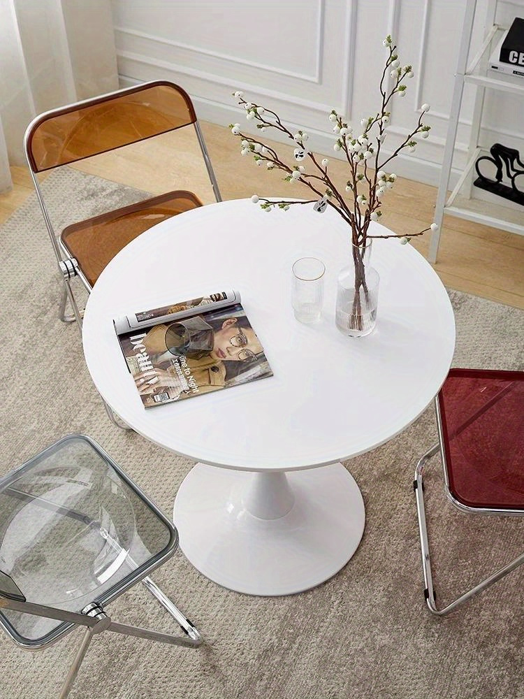 1pc Small Round Table, Modern White Simple Nordic Round Table With Chair Set, For Home Balcony Bedroom Bedside Tea Table, Multiple Sizes Available