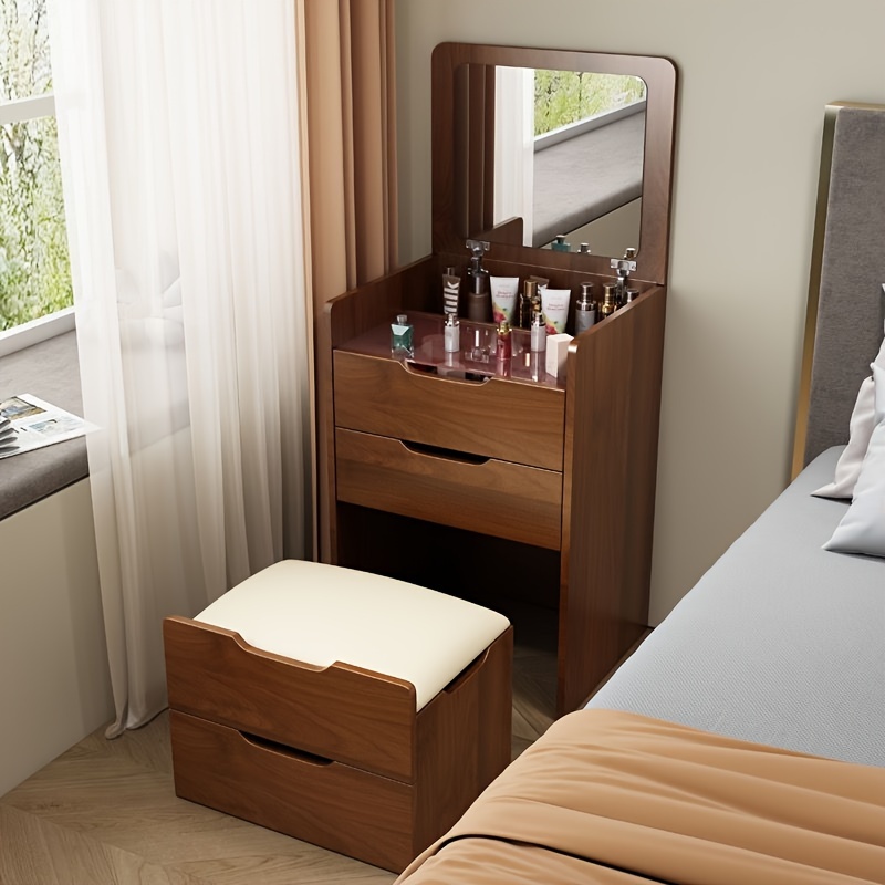 1pc Vanity Makeup Table, Vanity Desk With Mirror, 90° Folding Dresser Set, With Drawers And Stools For Storage, Dressers Bedroom Furniture, Dresser For Bedroom Makeup, Multifunctional Dresser, Bedside Table, White Dresser Chest