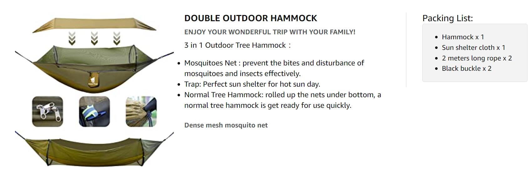 GEERTOP 3-in-1 Outdoor Hammock With Mosquito Net - Waterproof Double Sleep Camping Hammock For Backpacking, Travel, And Park - Enjoy A Bug-Free And Comfortable Rest