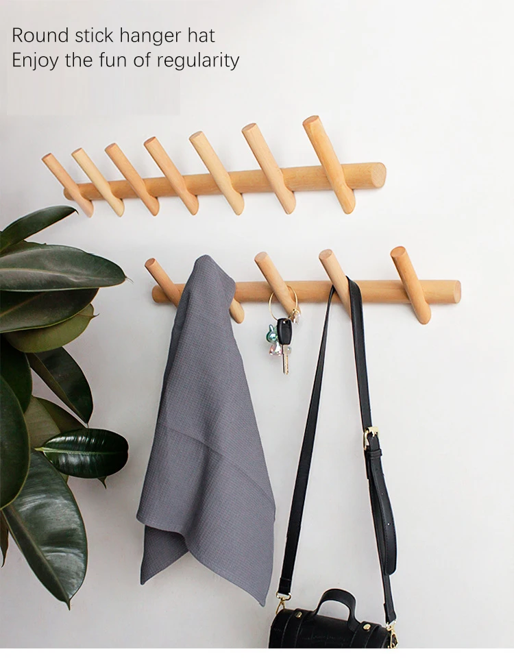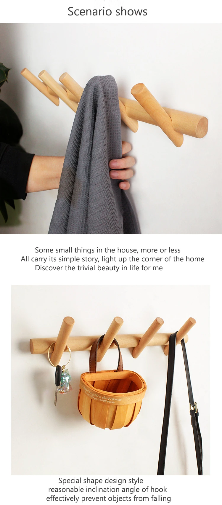 Modern Wall Mounted Beech Coat Rack Stand Hat Towel Hanger Wooden Hooks Robe Racks Pegs for Bedroom Clothes Entryway Furniture