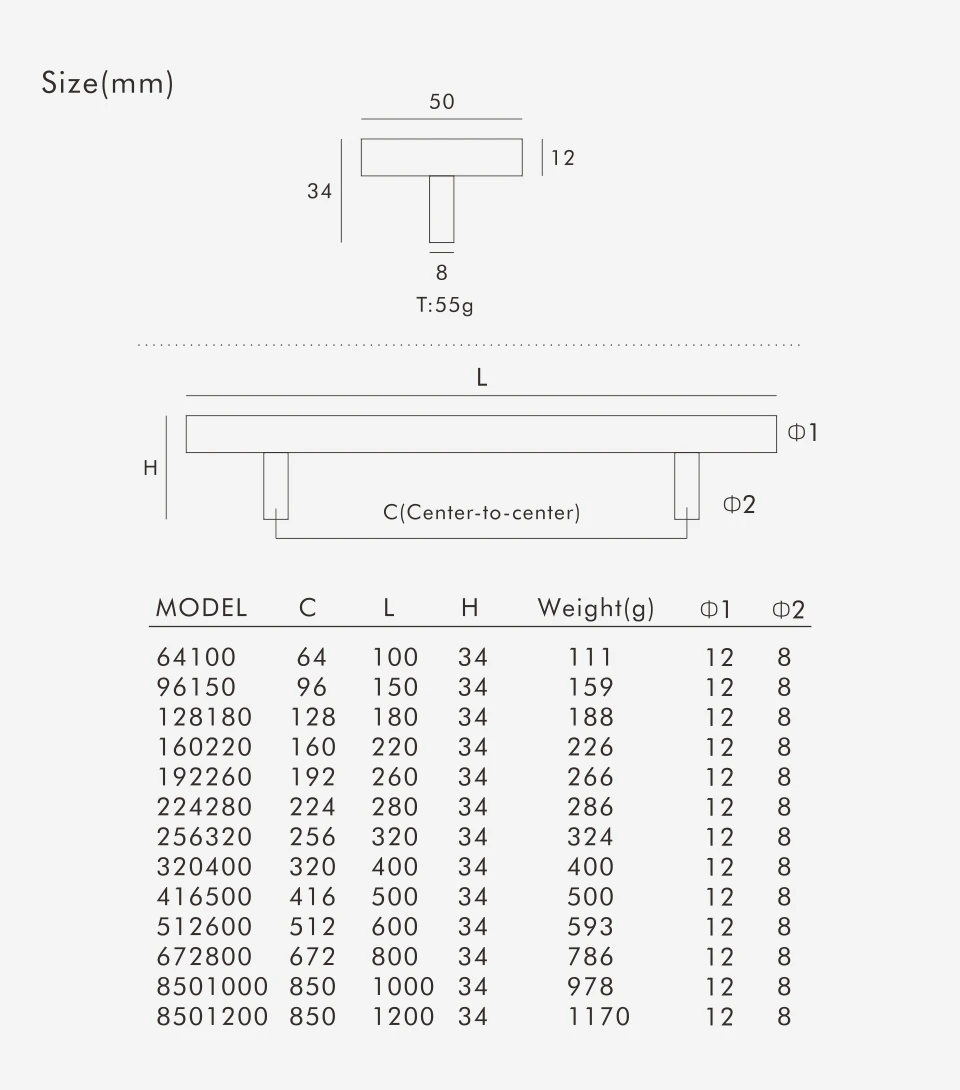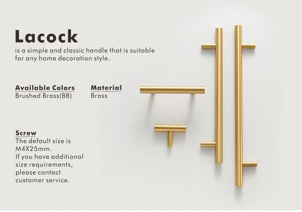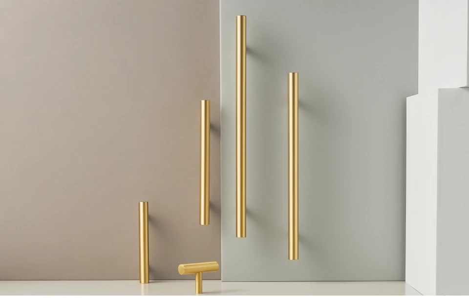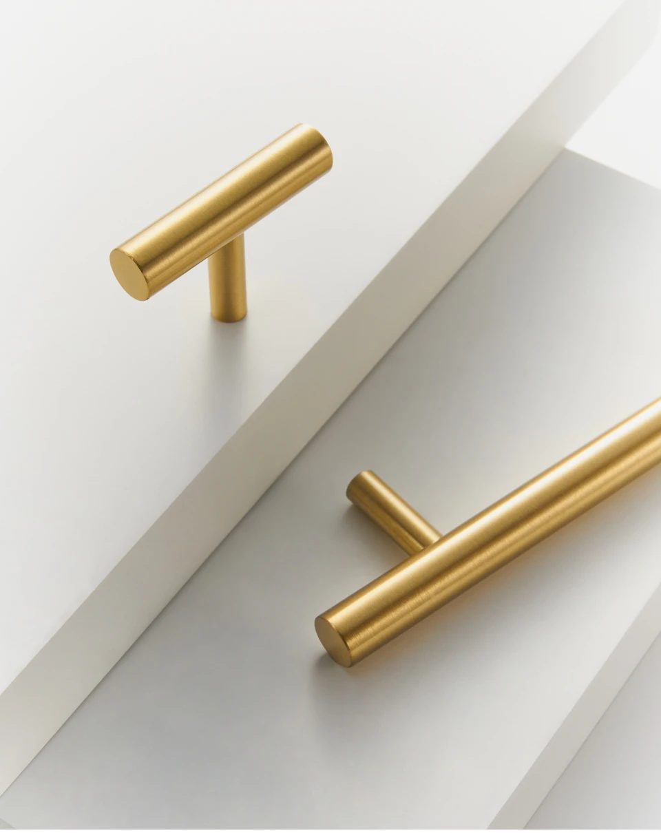 Nurlin Solid Brass Round Rod T-shaped Cabinet Handle Extended Long Wardrobe Drawer Refrigerator Kitchen door Pull Furniture